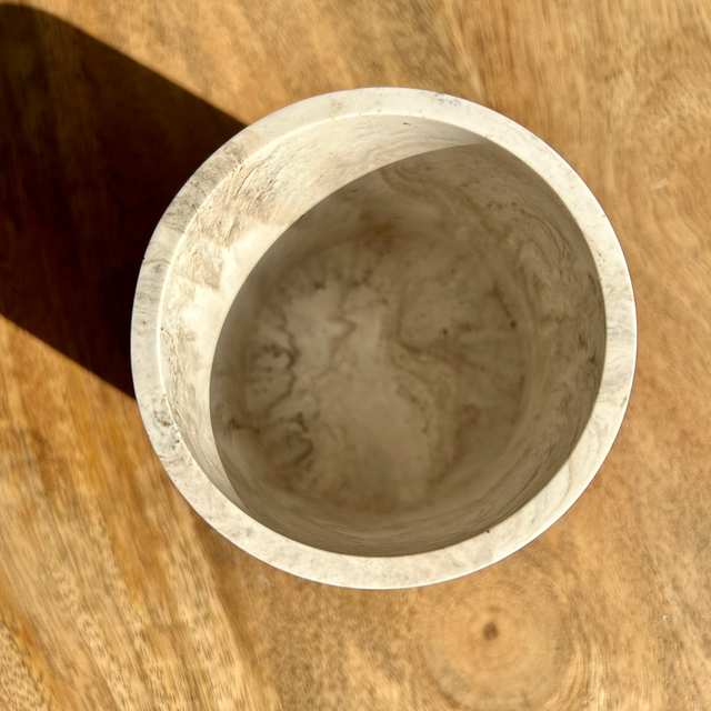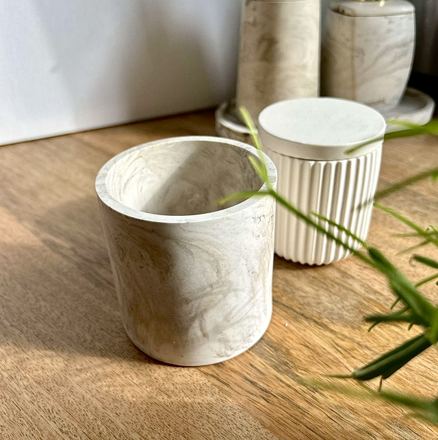 Grand pot, utile pour mettre par exemple des crayons, des pinceaux à maquillage, ou encore des brosses à dents ou autre. De multiples utilité.