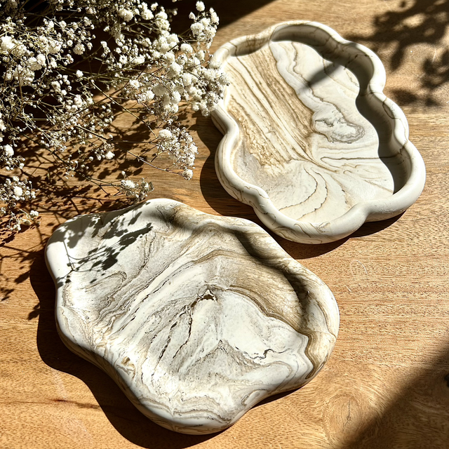 Plateau nuage effet marbre beige