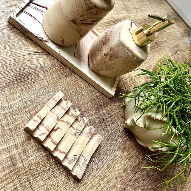 Porte savon, avec encoche pour que l’eau coule. Couleur beige effet marbre Terracotta.