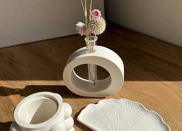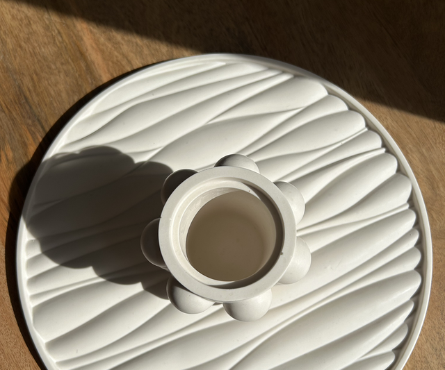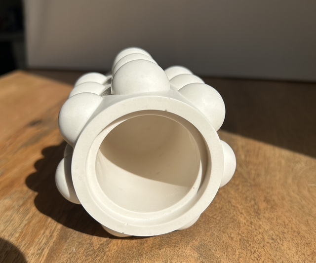Pot avec boule tout autour de couleur blanche.