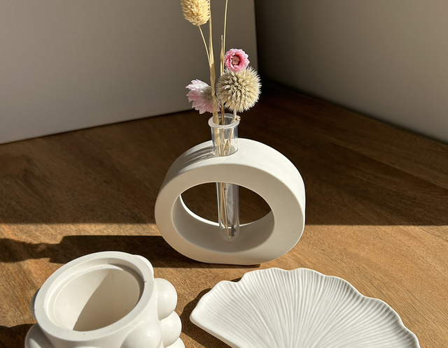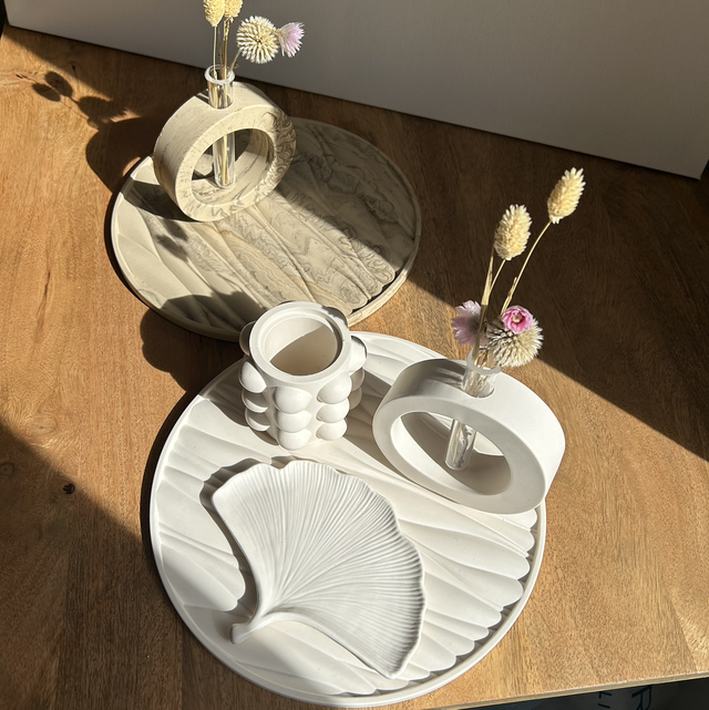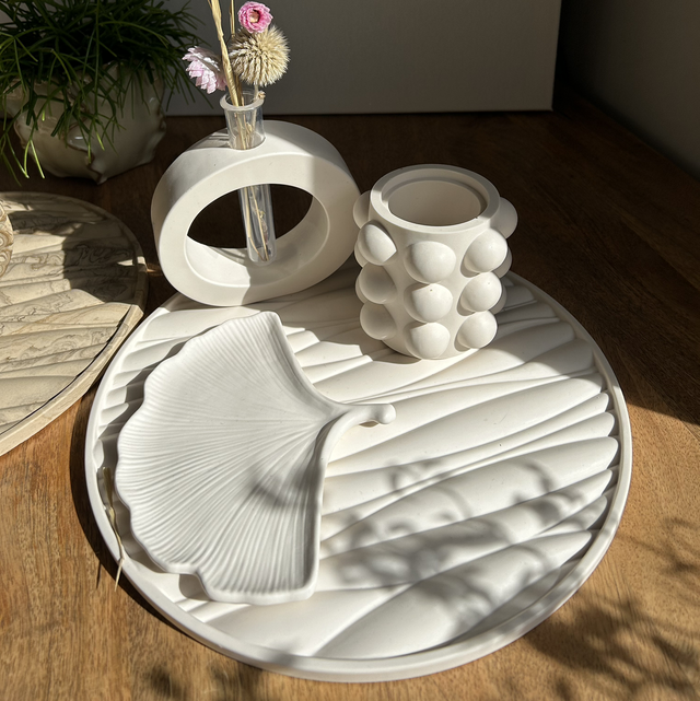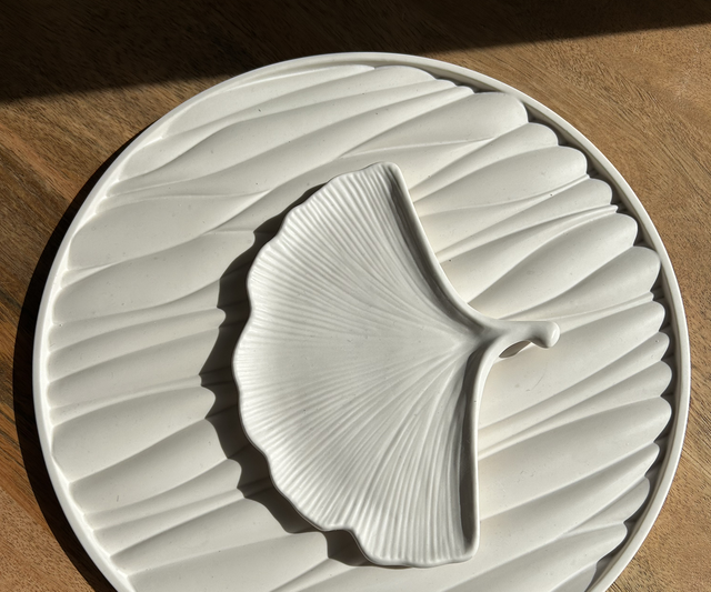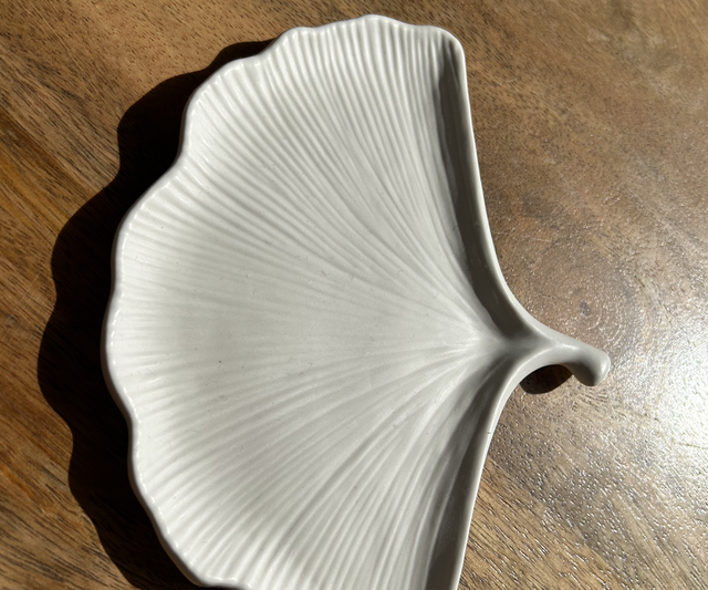 Vide poche en forme de feuille de couleur blanche.
