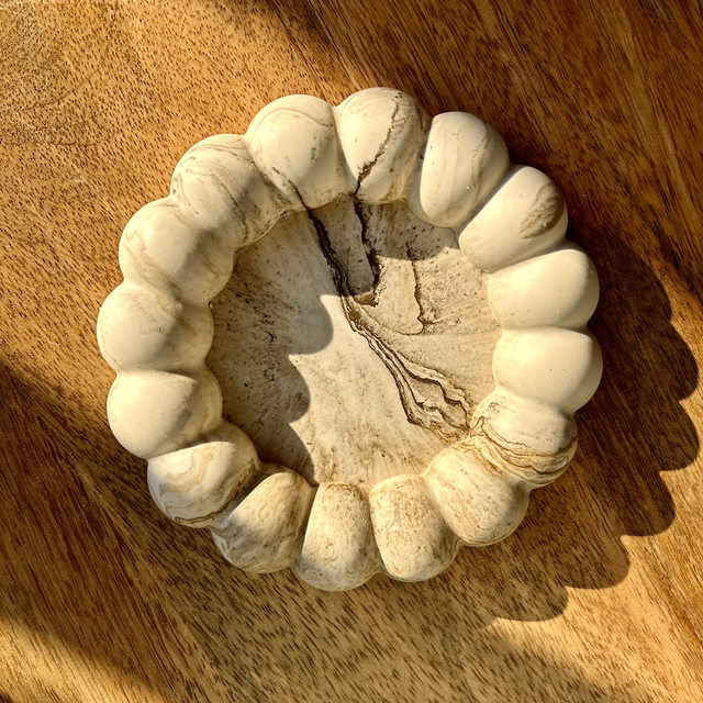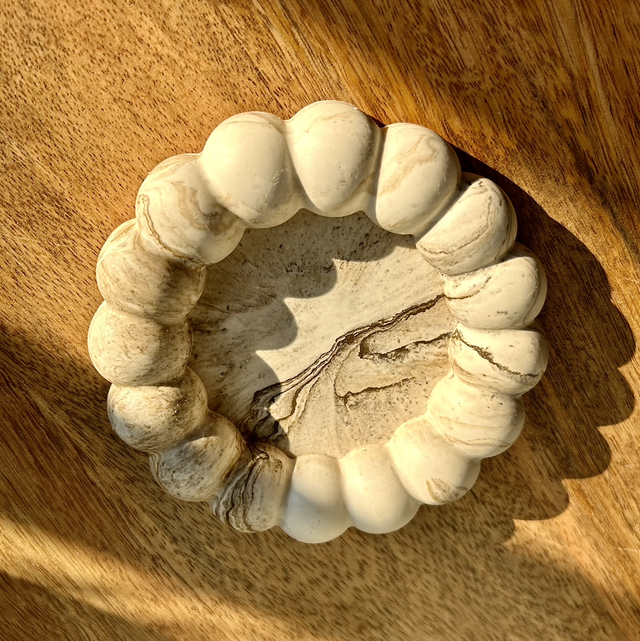 Vide-poche rond à grosse boule effet marbre beige