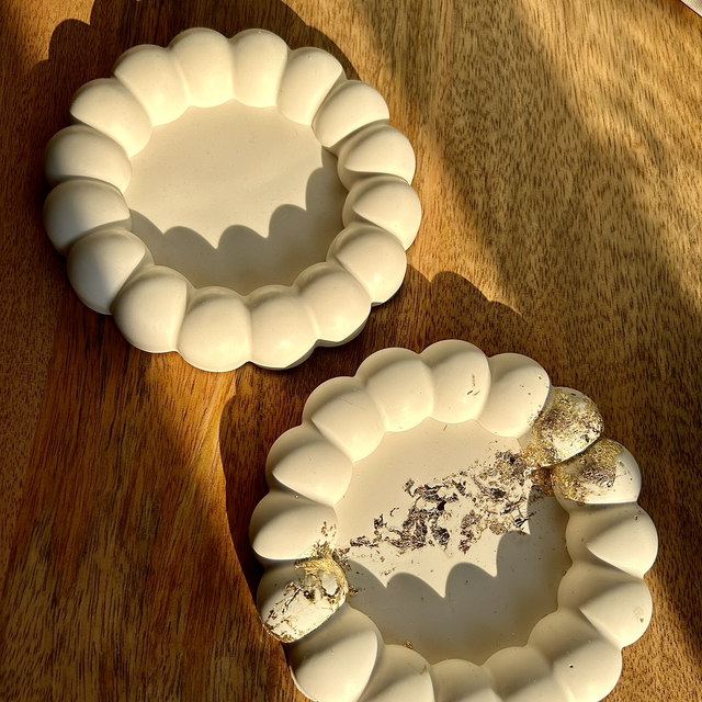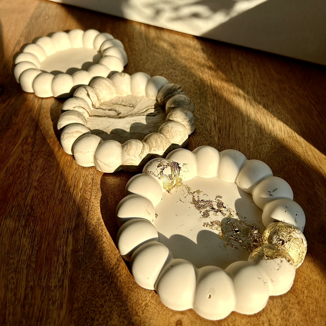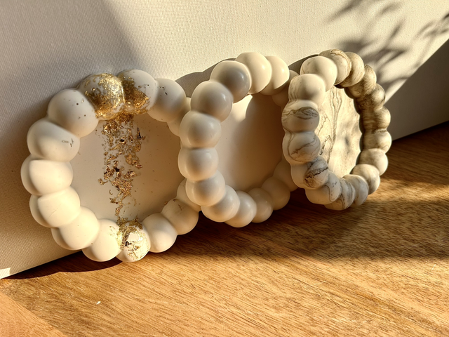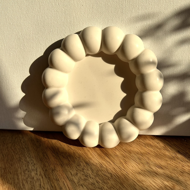 Vide-poches blanc avec grosses boules, taille du diamètre 12,8 cm