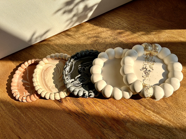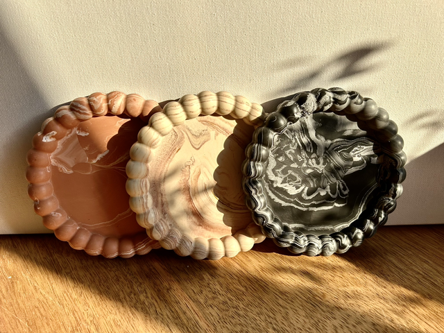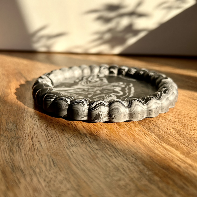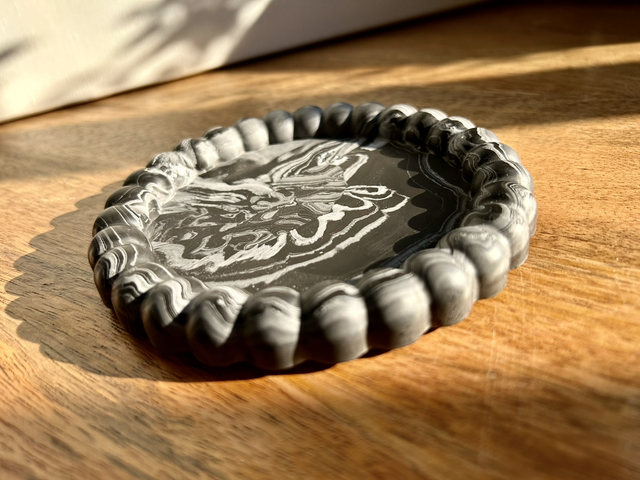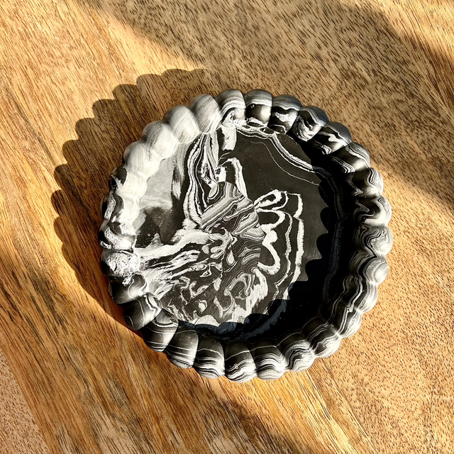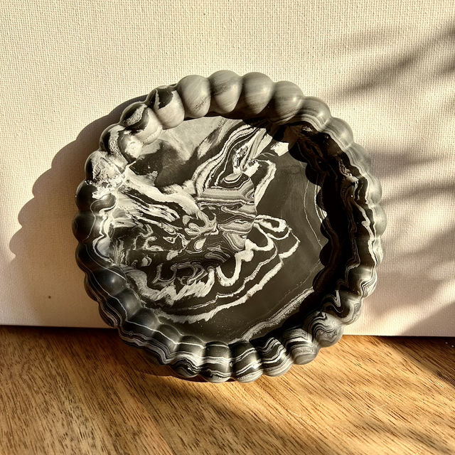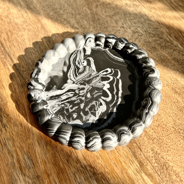 Vide-poches avec petite boule de couleur noir et effet marbre blanc, taille du diamètre, 13 cm.