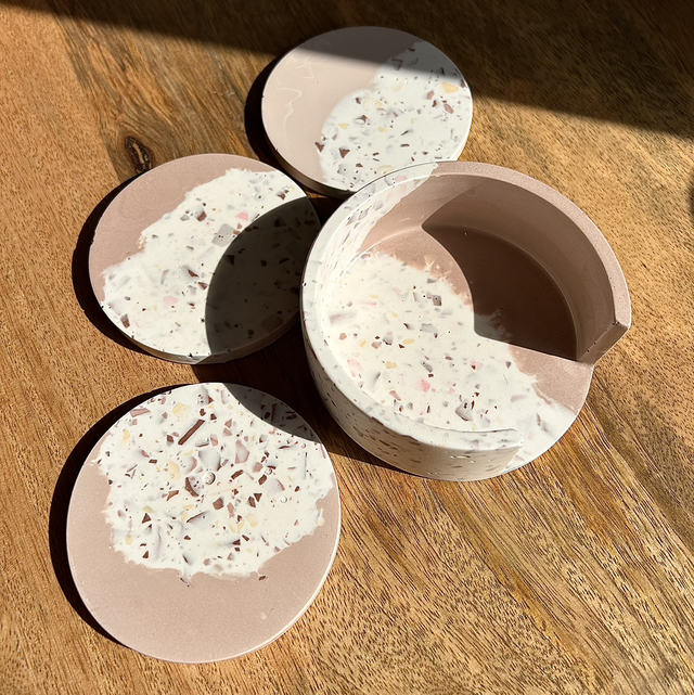 3 Sous-verre effet Terrazzo rosé