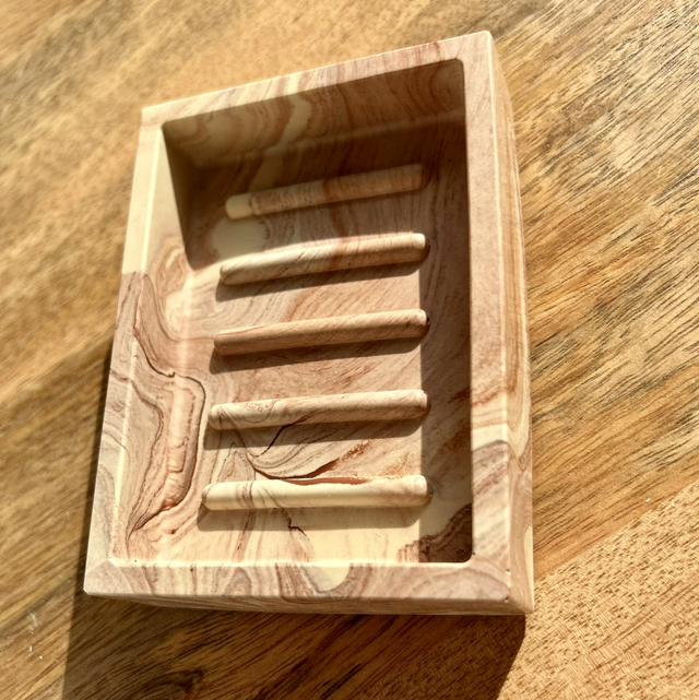 Porte savon épais couleur beige avec effet marbre couleur Terracotta